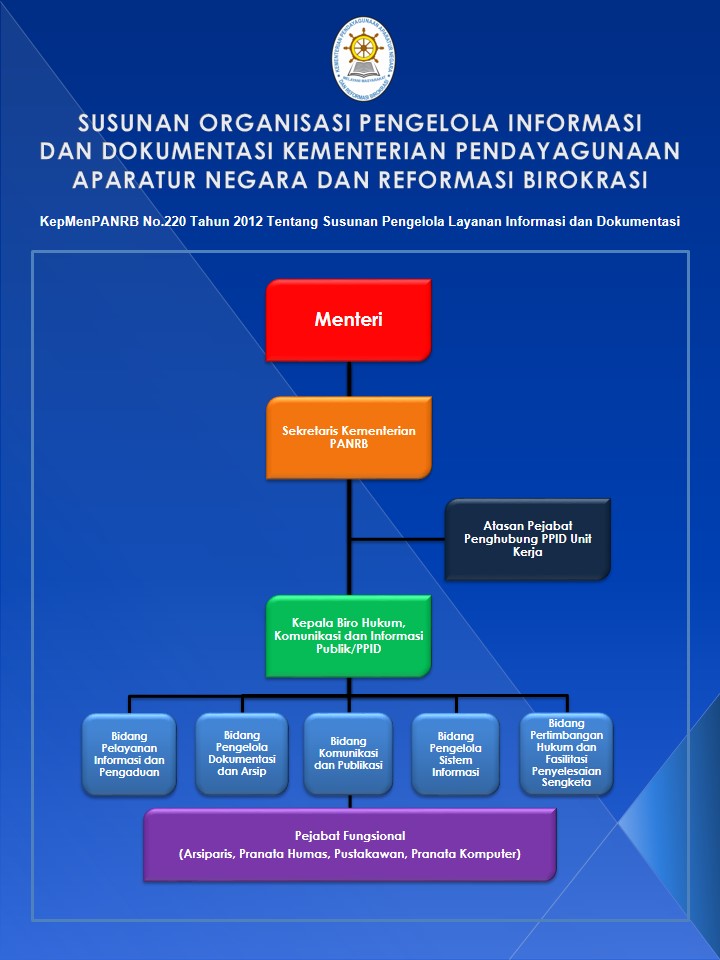PPID bertanggungjawab dalam pelayanan Informasi dan Dokumentasi di Lingkungan Dinas Ketenagakerjaan Provsu Dalam rangka memberikan pelayanan informasi dan dokumentasi dimaksud, PPID dibantu oleh PPID Pembantu, yang berada di lingkungan Perangkat Daerah berdasarkan peraturan perundang-undangan yang berlaku.